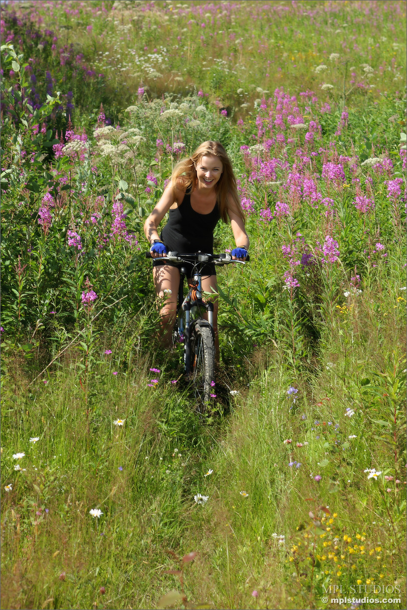 Blonde with amazing nipples stripping in a field from