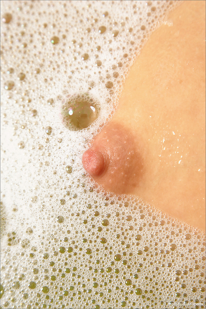 Brunette with puffy nipples bathing from
